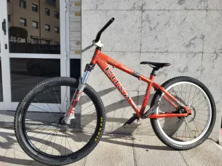 Bicicleta Kona para Dirt Jump en color naranja. Se entrega montada, falta ponerle la cadena y puños Pedales están ya montados de color negro. - Cuadro de aluminio. - Horquilla delantera. - Ruedas Maxxis. - Frenos shimano hidráulico #dirt #kona #dirtjump