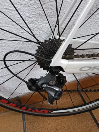 Bicicleta de carretera Orbea orca en color blanco, talla 53. - Cuadro de carbono - Frenos de zapata ultrgra - Transmisión Shimano ultrgra - Sillin de carbono - Tija S-WORKS de carbono Se vende por no usarse, las ruedas son unas continental ultra sport y están nuevas también trae portaviones de fibra de carbono.