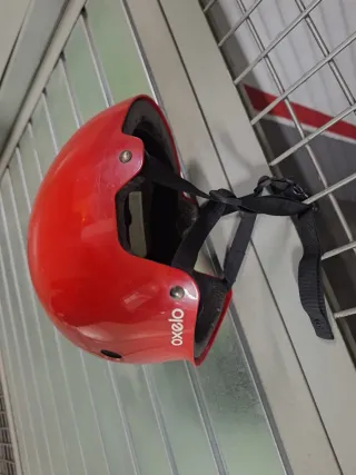 Casco infantil de color rojo, ideal para bicicleta, skate o patinete. Cuenta con correas ajustables para un buen ajuste. - Marca: Oxelo (Decathlon) - Color: Rojo - Talla: 50-54