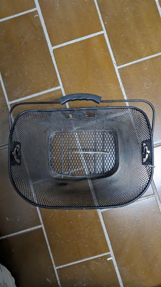 Vendo cesta / cesto de bicicleta delantera de la marca Hapo G (una marca conocida por su calidad y sistemas de anclaje). Está totalmente nuevo, a estrenar. Se vende porque no se llegó a usar. • Marca: Hapo G • Material: Metal / Malla de acero resistente. • Color: Negro. • Características: Incluye asa para llevar como cesta de la compra y sistema de fijación rápida para el manillar. Es perfecto para llevar la bolsa, la mochila o el casco de forma segura. Un accesorio duradero y muy práctico para bicicletas urbanas o de paseo.