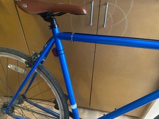 Bicicleta de estilo fixie, ideal para desplazamientos urbanos. Su diseño la hace ágil y fácil de manejar en la ciudad. - Cuadro de acer color azul. - Frenos delanteros y traseros. - Sillín de cuero marrón. - Ruedas de 700c en buen estado. - Incluye la cadena para atarla y las luces. (No tengo el cargador). - Ideal para Blanes / Girona. Precio negociable.