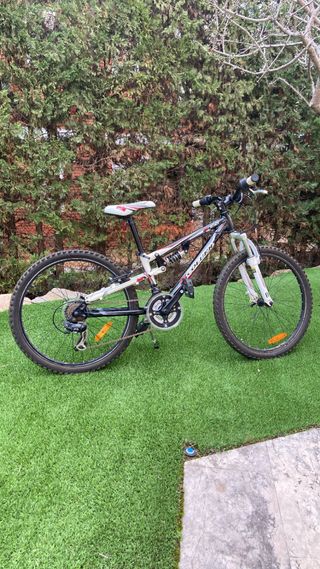 Bicicleta de montaña Cannondale con doble suspensión y ruedas de 26 pulgadas. - Cuadro de aluminio. - Horquilla delantera lefti. - Amortiguador trasero Fox. - Frenos de disco hidráulicos. - Transmisión Shimano XTR