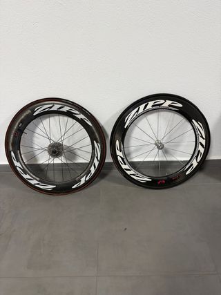 Juego de ruedas Zipp 808 para bicicleta. - Powetap cicleops en rueda trasera. - Incluye cubiertas nuevas.