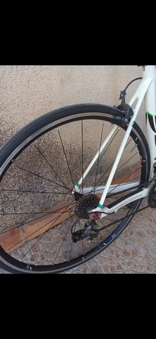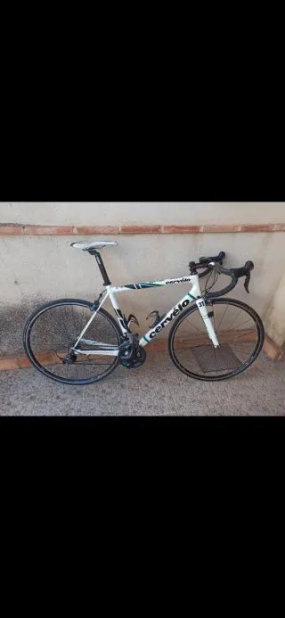Bicicleta de carretera Cervelo R3. - Cuadro blanco con detalles en verde y negro. - Manillar plano FSA Carbono. - Ruedas Bontrager RXL. POSIBILIDAD DE DAR CON ZIPP 404.