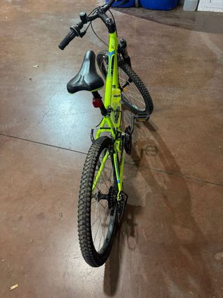 Bicicleta junior de color verde brillante, ideal para iniciarse en el ciclismo. - Cuadro de aluminio. - Suspensión delantera. - Ruedas de 24 pulgadas. - Frenos V-brake.