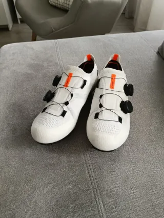 Zapatillas de ciclismo DMT KR0 número 40. - Cierre BOA. - Tejido de malla transpirable. - Suela de carbono rígida. Están pogo usadas y en perfecto estado, me vienen algo grandes y de ahí la venta.