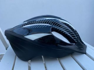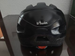 Casco de bicicleta B'Twin en color negro. Está en buen estado y listo para usar. - Marca: B'Twin - Color: Negro - Talla: (A determinar según medidas) - Ideal para ciclismo urbano