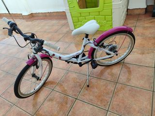 Bicicleta para niña, en buen estado. Ideal para niñas de entre 8 y 12 años. - Color beige y fucsia. - Llantas de 20 pulgadas. - Portaequipajes trasero. - Guardabarros.