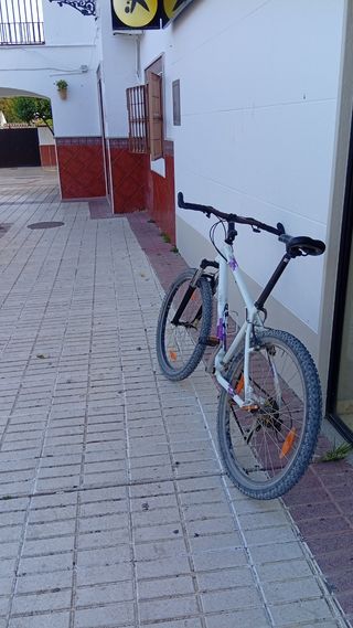Bicicleta de montaña de 26 pulgadas en buen estado. Ideal para paseos por ciudad o montaña. - Color blanco con detalles morados. - Llantas en buen estado. - Lista para usar. La vendo por no usar
