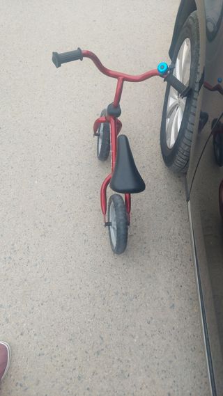 Bicicleta para niños, ideal para principiantes. Es de color rojo y se encuentra en buen estado. - Perfecta para aprender a mantener el equilibrio. - Diseño ligero y resistente. - Fácil de manejar.