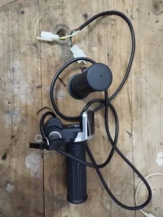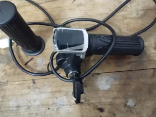 Conjunto de acelerador y llave de contacto para bicicleta eléctrica. - Empuñadura de acelerador. - Módulo de encendido con dos llaves. - Cableado con conectores. - Medidor de voltaje. Producto nuevo a estrenar Probado si buen funcionamiento 36v 48v 52v