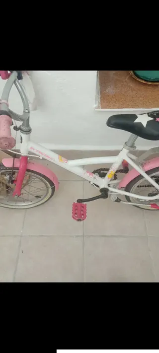 Bicicleta infantil en buen estado, ideal para los más pequeños. - Color rosa. - Incluye ruedines para facilitar el aprendizaje. - Diseño divertido.