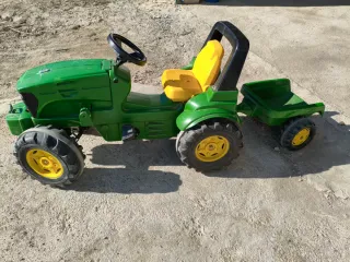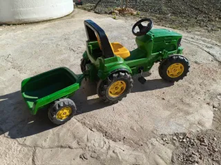 Tractor de pedales de color verde, perfecto para que los más pequeños disfruten al aire libre. Incluye un remolque. - Diseño inspirado en tractores. - Ruedas resistentes. - Asiento amarillo.