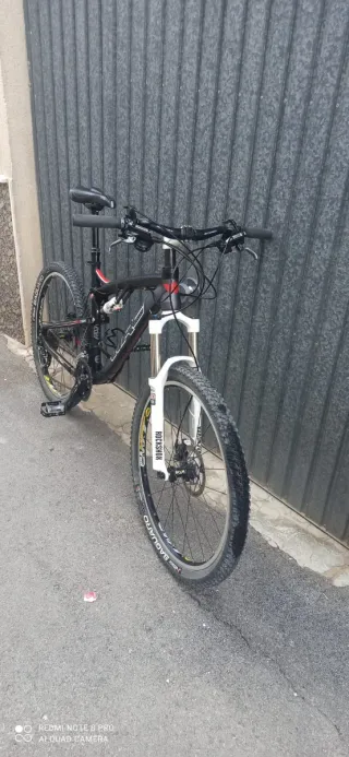 Bicicleta de montaña Conor WRC con doble suspensión, talla M y ruedas de 26 pulgadas. - Cuadro de aluminio. - Suspensión delantera y trasera RockShox. - Frenos de disco. - Cambio Shimano xt. - Tija telescópica. - Llantas mavic tubeless.