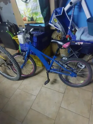 Vendo 2 bicicletas por falta de uso. Llevan 3 años colgadas en mi garaje sin darle uso La azul que es más pequeña está nueva, con algún rallajo que otro, la saquemos del taller y no se usó apenas, le hace falta una puesta a punto. La gris que es más grande funciona bien y ha sido utilizada hace poco, funciona correctamente todo y está más o menos al día, el único fallo es que un pedal se sale de vez en cuando, por lo demás la bicicleta está perfecta. Precio negociable ya que ahora mismo necesito espacio en el garaje