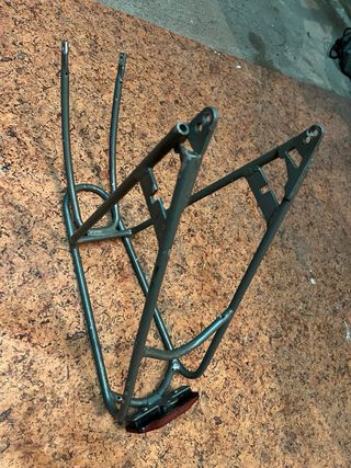Bicicleta urbana en buen estado, lista para usar. - Cuadro de color azul con detalles amarillos. - Horquilla y manillar plateados. - Portaequipajes delantero y trasero.