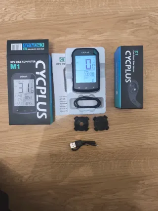 NUEVO,A ESTRENAR Ciclocomputador Gps CYCPLUS M1 Viene con un soporte pequeño y otro grande, funda de silicona, cable USB y libro de instrucciones. Pantalla super grande de 2,9 pulgadas -Enciende automáticamente la luz de fondo -Compatible con ANT + periférico: monitor de frecuencia cardíaca, sensor de cadencia -Datos en tiempo Real que muestran: Velocidad máxima/actual/media, cadencia, frecuencia cardíaca, potencia, Tiempo, distancia, ascenso, ODO, altitud, temperatura -Admite análisis de datos de aplicaciones y sincronización con Strava -Batería más de 30 horas