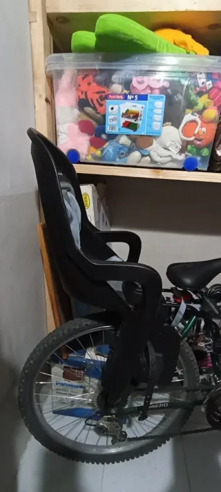 Silla de seguridad para bicicleta, diseñada para el transporte de niños. - Asiento acolchado. - Arnés de seguridad de 3 puntos. - Respaldo alto para mayor comodidad. - Diseño ergonómico.