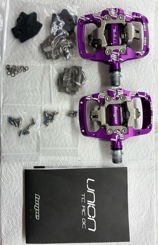 Pedales automáticos Hope Union Trail en color purpura para trail, all mountain y enduro Shimano, Look