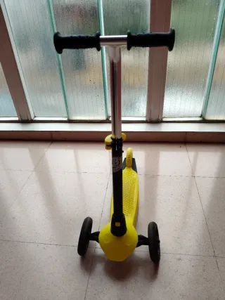Patín infantil de tres ruedas en color amarillo. Ideal para los más pequeños. - Plataforma antideslizante. - Manillar ajustable. - Ruedas de goma.