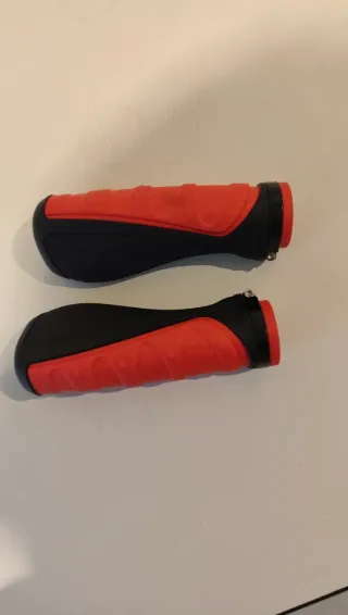 Puños ergonómicos para bicicleta o patinete. - Color rojo y negro. - Diseño con relieve para mejor agarre. - Incluye sistema de fijación.