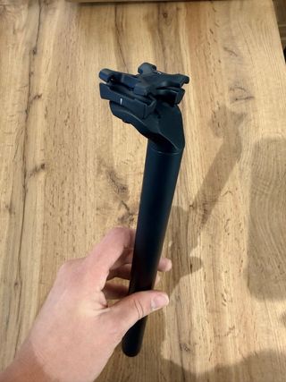 Tija de sillín para bicicleta de carretera con retroceso. 27,2 - Color negro mate. - Fabricada en aluminio.
