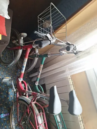 Se venden dos bicicletas clásicas de la marca BH. Son ideales para paseos y para coleccionistas. - Bicicleta roja con cesta delantera. - Bicicleta verde con sillín doble.