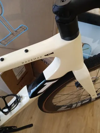 Bicicleta gravel 3T Racemax Wpnt - Cuadro de carbono. - Color crema. - Ruedas Zipp Xplr S -Shimano Grx di2 2x12 -Potenciometro 4iiii de biela izquierda -Talla 53