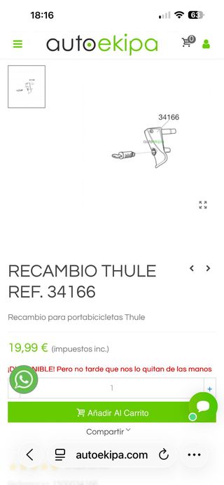 Recambio para portabicicletas Thule. falta el cierre Referencia: 34166 - Precio: 10€ (impuestos incluidos).