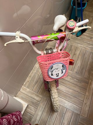 bici para niña con timbre y cesta. tiene mucho tiempo y ewta desgatada fisicamente pero finciona bien. ideal para romper mano