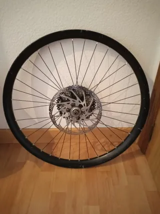 Rueda de bicicleta para disciplinas como Downhill, Freeride o Enduro. - Tamaño de 26 pulgadas. - Incluye disco de freno.203 mm Shimano en buen estado .Buje center loock shimano deore XT.Y cassette de 8v ,11.42.ancho interno de la llanta 32mm. La dejo en 30€ no negociable...abría que destensarle todos los radios y apretarlos de nuevo porque así da un poco de salto.