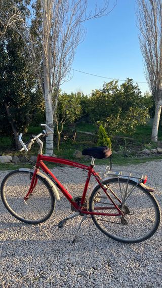Vendo bicicleta de montaña de 26 pulgadas con portabultos y caballete. La bicicleta está en buen estado general, aunque el freno trasero está muy ajustado y roza la llanta, por lo que habría que regularlo. Por ese motivo se vende a precio económico. "Precio negociable." Ideal para quien quiera arreglarla fácilmente o usarla para trayectos cortos.