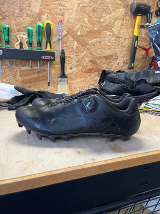 Zapatillas de ciclismo Mavic Crossmax en color negro. Es un 42 2/3. Diseñadas para un ajuste seguro y cómodo. - Cierre BOA. - Suela con tacos para agarre. - Exterior sintético. En perfecto estado. Practicamente no se han usado. La suela tiene todos los tacos.