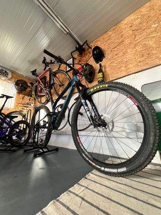 Bicicleta Radon Skeen Trail. - Cuadro de carbono. Basculante de aluminio. - Ruedas DT Swiss XM 481 - Suspensión delantera Fox 34 130mm - Frenos de disco Sram g2 (no los de la foto) - Tija telescopica Fox transfer 125mm kashima (no la de la foto) - Manillar y potencia RaceFace aluminio (no la de la foto) - No incluye pedales Si se quiere la bici tal qual está en la foto su precio es de 1800€