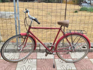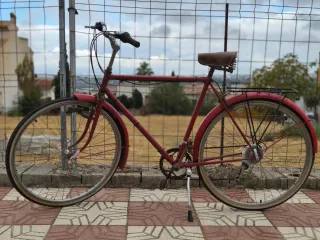 Bicicleta de paseo en color rojo, ideal para desplazamientos urbanos. - Cuadro de metal. - Sillín de cuero. - Portabultos trasero. Bicicleta el chassi DAL...su ex dueño ha restaurado el cuadro y los guardabarros...de la marca DAL el resto marshas ruedas manillar de otra bici...se puede ver sin compromiso...anda muy bien actualmente la estoy usando (paseos)