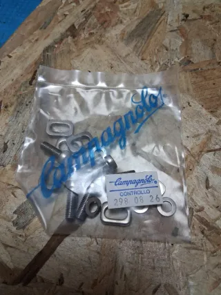 Set de calas para bicicleta de la marca Campagnolo. - Incluye tornillos y arandelas. - Componentes metálicos.