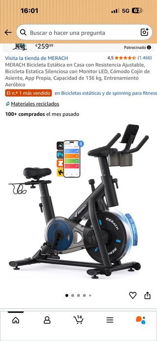 MERACH Bicicleta Estática en Casa con Resistencia Ajustable, Bicicleta Estatica Silenciosa con Monitor LED, Cómodo Cojín de Asiento, App Propia, Capacidad de 136 kg, Entrenamiento Aeróbico. Sin uso. Aplicación interactiva, estabilidad, funcionamiento silencioso, pantalla LED. - Asiento acolchado y ajustable. - Manillar ergonómico. - Pedales con agarre. - Portabidones integrados. -Tiene puestos los pedales con calas .