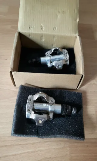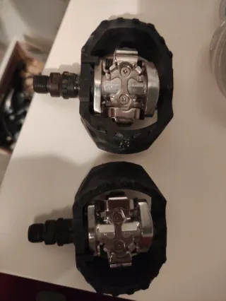 Par de pedales para bicicleta de montaña con sistema de calas. - Diseño robusto y ligero. - Mecanismo de enganche y liberación. - Eje roscado estándar. -Estan nuevos -PRECIO NEGOCIABLE -Me los regalaron pero no los llegue a usar