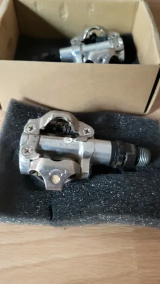 Se venden Pedales Shimano PD-M520 SPD para bicicleta, ideales para ciclismo. - Material metálico plateado. - Diseño para pedales automáticos.