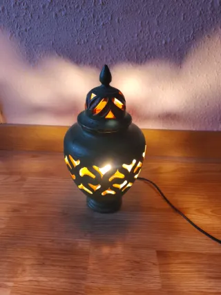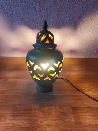 Lámpara de mesa con un diseño único que proyecta una luz cálida y acogedora. - mode unos 30cm de alto - Diseño calado. - Tapa superior decorativa. - Base estable. - cerámica