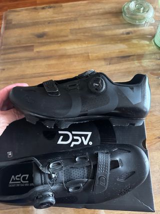 Zapatillas de ciclismo DPV en color negro. - Cierre de boa. - Doble velcro. - Suela con tacos.