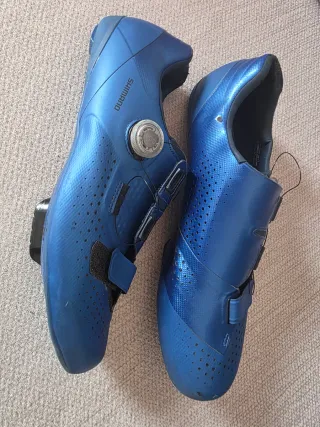 Zapatillas de ciclismo Shimano RC5 en color azul. - Cierre BOA velcro. - Suela de carbono. - Diseño deportivo. - Muy cómodas - No incluye las calas - Talla 46
