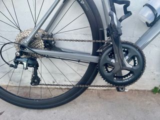 Bicicleta de carretera Felt F95 en color gris. Ideal para empezar . Cuadro aluminio y horquilla carbono. Desarrollos 50x34 y cassette de 9 11x25 Talla 56 Peso 9,68. Se entrega con pedales y calas. Revisada y cadena engrasada.