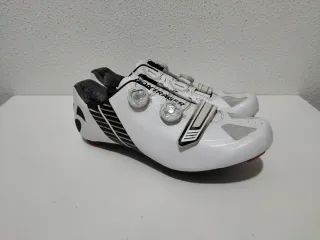 Zapatillas de ciclismo de carretera en perfecto estado en color blanco. Incluyen calas look Talla 43 - Doble Cierre tipo BOA. - Suela rígida de carbono. - Diseño perforado para ventilación. Comodísimas y ligerísimas Se vende por no usar