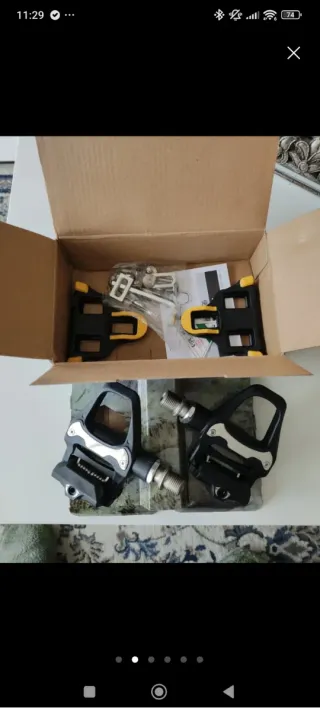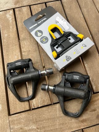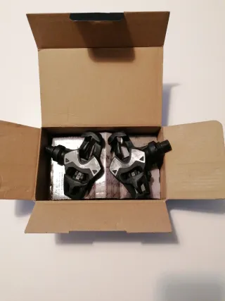 Se venden pedales automáticos para bicicleta de carretera compatibles con sistema Shimano SPD sl. - Incluye pedales y calas y llaves de montaje. - Vienen en su caja original. - Pesan 257gr.