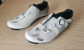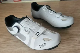 Zapatillas de ciclismo de carretera DPV en perfecto estado. Diseñadas para un ajuste cómodo y seguro. - Cierre BOA y velcro. - Color blanco y gris. - Calas incluidas
