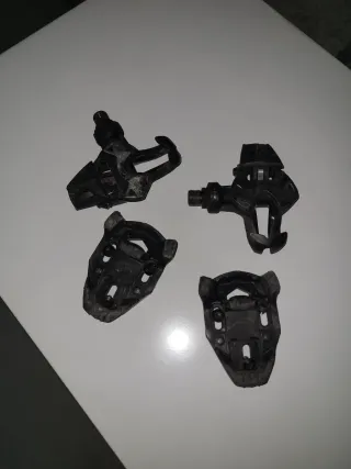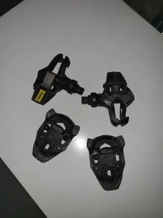 Par de pedales de carretera. - Diseñados para ciclismo. - Material: Plástico y metal. Usados . Estado aceptable . Lleva regulador de tensión. Va sin calas