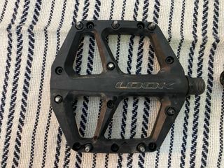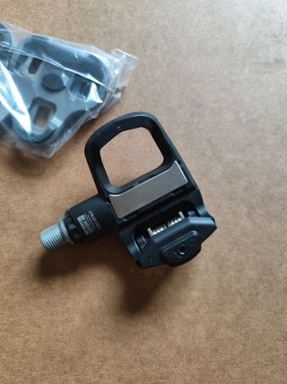 Pedales compatible con look delta. Rozados pero con funcionamiento perfecto. Se pueden entregar con calas rojas y negras
