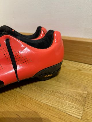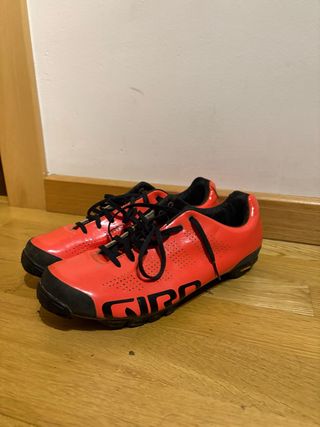Zapatillas de ciclismo de montaña Giro Empire en color naranja y negro, talla 43. - Cierre con cordones. - Suela Vibram. - Diseño con perforaciones. - Calas shimano