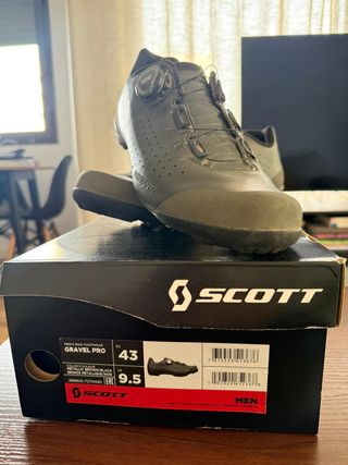 Zapatillas de ciclismo Scott Gravel Pro en color marrón/negro metálico. - Talla EU 43 / US 9.5. - Cierre BOA. - Modelo Gravel Pro. - incluye cala shimano (ver foto) Muy buen estado y con tan solo 1 año aprox. de uso